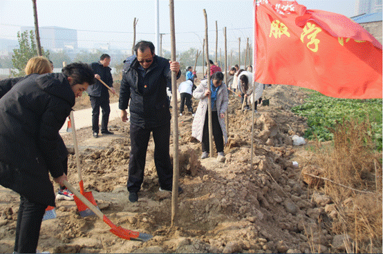 11月26日上午10:30,服装学院党委书记张平、院长常丽霞等党政领导、教工代表、学生党员共40余人积极参与河南科技学院新东区植树活动,按质按量完成了50棵树苗的栽植工作。