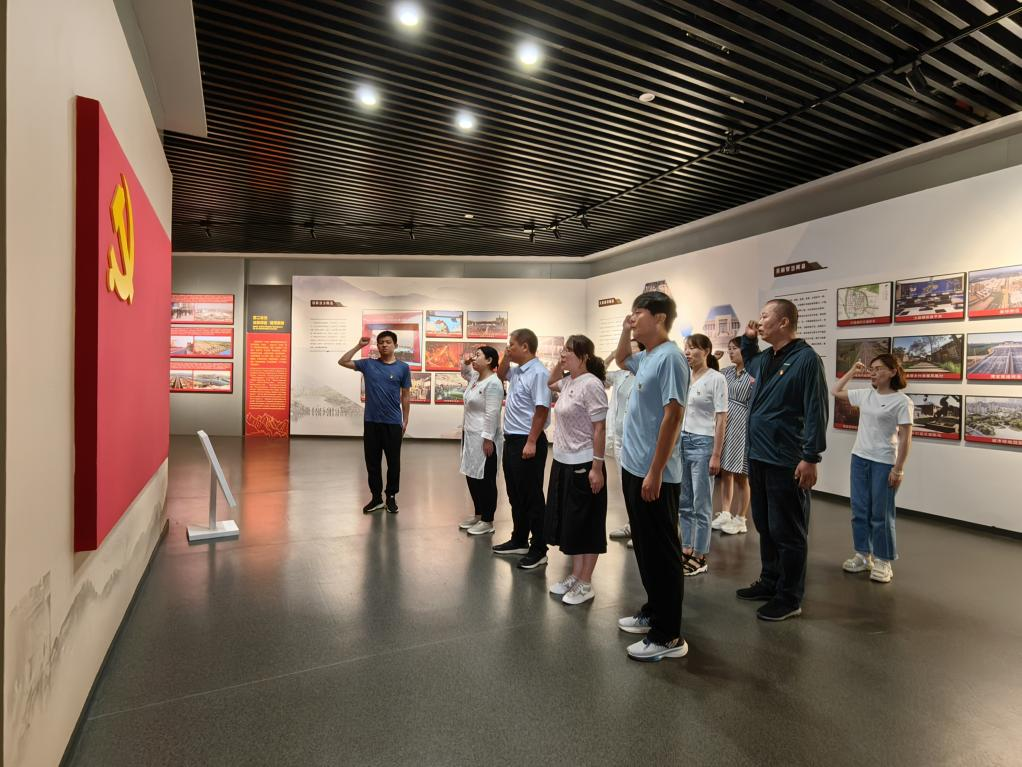 在“辉县人民干得好”展览馆讲解员的带领和解说下,同志们在展览馆驻足观看、认真聆听上世纪六七十年代辉县人民战天斗地、引流治水、大干十年的奋斗精神,创造了以“担当精神、实干精神、苦干精神、创业精神”为核心的辉县精神。先后涌现出范清荣、范海涛、裴春亮、张荣锁、赵化录等先进人物以自己的忠诚和担当谱写了为家乡发展增活力、为群众谋幸福的辉煌篇章,他们的事迹使大家经受了一次深刻的思想政治洗礼。在鲜红的党旗下,全体党员同志面对党旗再次重温入党誓词。