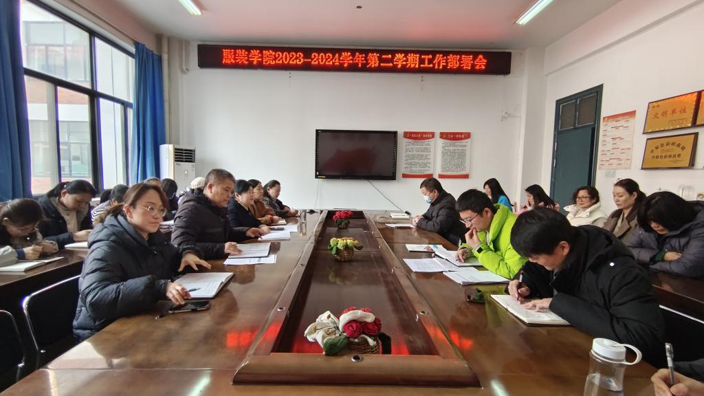 2月24日下午,服装学院在11#204会议室召开2023-2024学年第二学期工作部署会,学院领导班子和全体教工到场参加。会议由院党委书记游红伟主持。