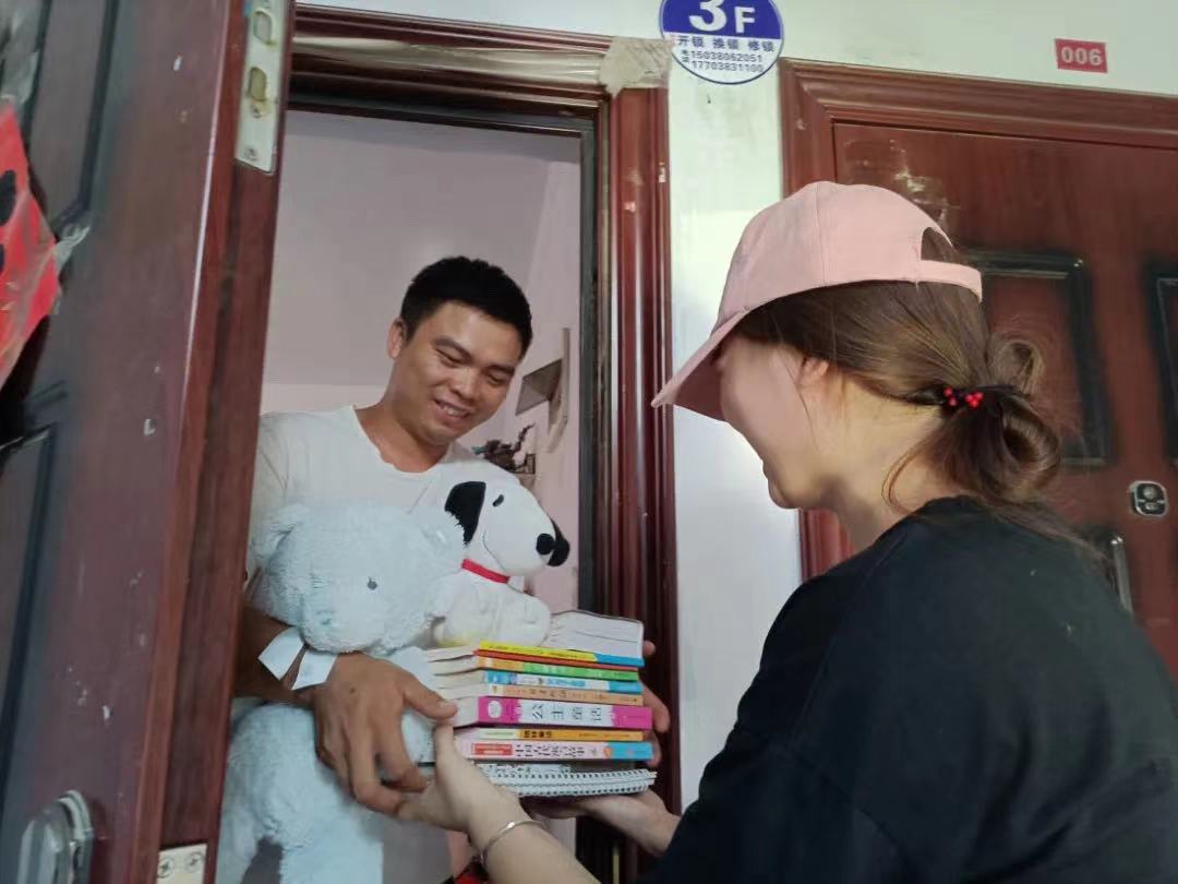 7月23日,志愿者们来到商丘市贫困村英王村进行志愿服务,并将提前整理好的文具及衣服等物品送到孩子们的手中。志愿者给孩子们讲故事,教他们写字、画画,指导孩子们做功课,还给孩子们赠送了书籍和小礼品。孩子们非常高兴,脸上洋溢着欢乐的笑。