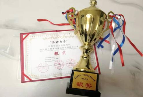 日前,2020“敦礼为衣”第四届柯桥﹒中国国际礼服设计大赛落下帷幕。在来自20个省市地区及国家500余名选手的3000余件作品中,我校服装学院闫建赛同学的作品《天青·烟雨》和范梦格同学的作品《青衣》脱颖而出,分别荣获银奖和优秀奖,张记光老师荣获优秀指导教师奖。