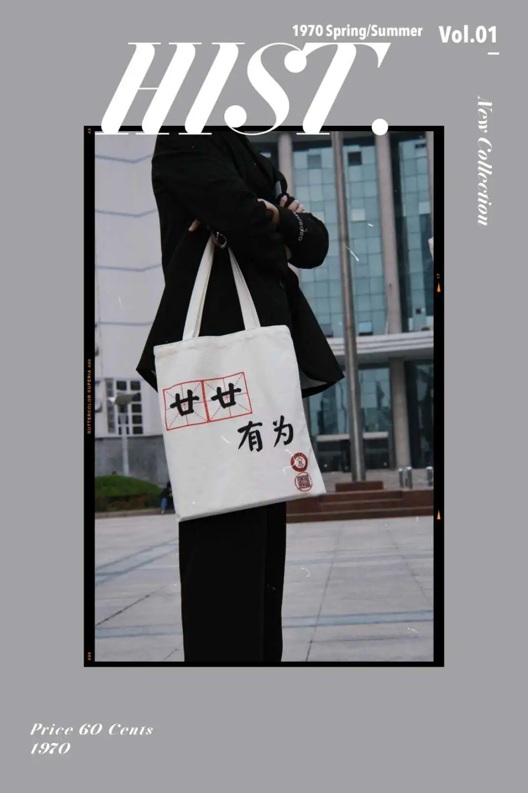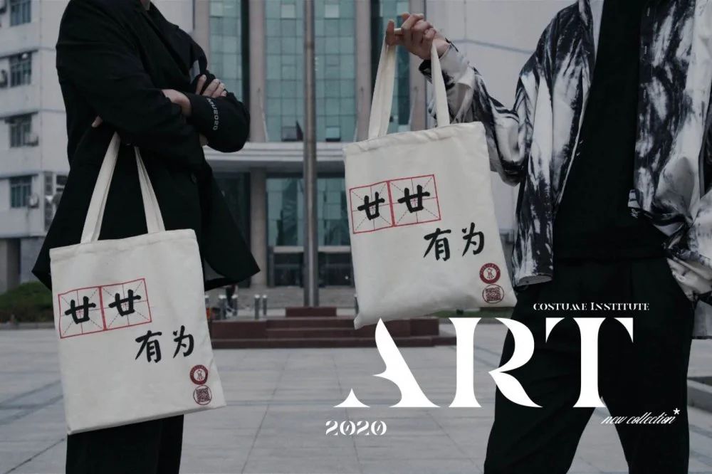 该款帆布包整体为白色,上面印有“廿廿有为”字样,在右下角印有学院院徽和学院公众号“衣尚青春”的二维码。“廿廿有为”,是学院对新生的祝福。廿,意为二十,是对所有2020级新生的简称;有为,意为有作为,希望新生奋发有为,成为有为的青年。这份见面礼同时具备实用性与艺术性,对于新生来说,具有很重要的纪念意义。
