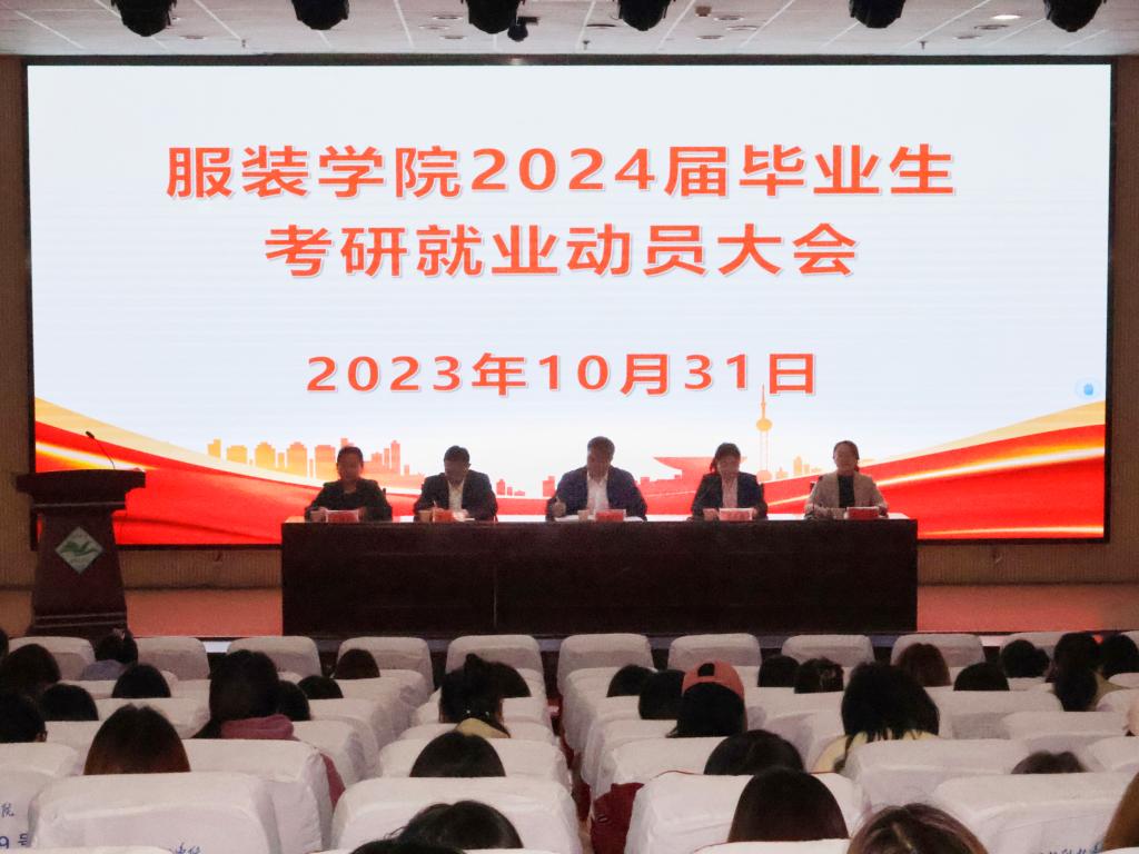 为促进2024届毕业生实现高质量就业,增强学生考研就业信心,切实帮助毕业生了解就业形势,明确就业目标,把握就业机会。服装学院于10月31日上午在新图书馆一楼报告厅举行2024届毕业生考研就业动员大会。校就业创业指导中心副主任李月涛应邀参加,服装学院党委书记游红伟、院长商亚敏、副书记高莉、副院长郭海燕、全体辅导员以及2024届全体毕业生参加此次会议。会议由高莉主持。