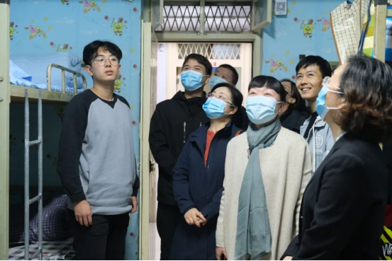 走访过程中,领导老师们对于同学们的学习、生活等情况进行了深入了解,并对同学们所提出的问题作出细致解答,给予相应的指导建议。此外,老师们也对新同学提出了几点期望,希望大家在大学阶段能够把握青春时光,加强自我管理,保持良好作息,培养健康文明、积极向上的生活习惯,同时提醒同学们增强防电信诈骗、用电安全等意识。
