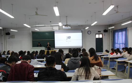 10月18日下午14:30,利郎(中国)有限公司校园、河南文文服饰和河南设计师联盟等多家企业在十号楼合五教室举行实习招聘宣讲,服装学院以及其他学院近二百余名学生参加了宣讲会。