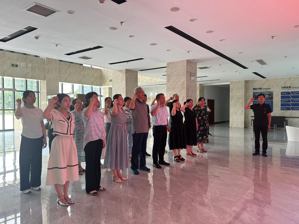 在经开区管委会智能制造中心大厅,双方组织全部党员重温入党誓词。党员们握拳过肩,目光坚定,面向鲜红的党旗,庄严宣誓。在激昂的宣誓声中,每位党员都再次接受了一次深刻的思想洗礼,进一步强化了对党忠诚、全心全意为人民服务的担当使命。