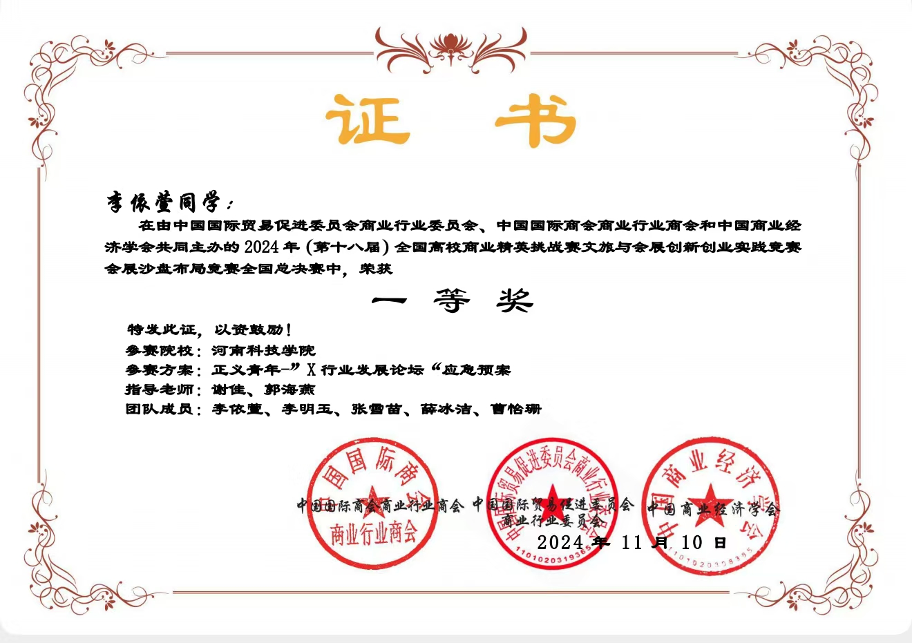 服装学院在郭海燕等教师的组织指导下,共有8个团队报名参加,历时近8个月,经过理论知识赛、校赛、省赛、国赛等层层选拔,最终“正义青年队”及“智慧火花团队”获得大赛会展安全应急沙盘赛道国赛总决赛一等奖、二等奖各一项;“v我50分你鸡翅一队”获大赛会展安全应急沙盘赛道省赛一等奖;“所以爱会消失对不队”获得省文旅短视频赛道二等奖。我校参赛作品整体布局合理、特色鲜明,在排推演应急演练、项目陈述和答辩环节,参赛队员讲解流利、逻辑缜密,获得评委一致好评。