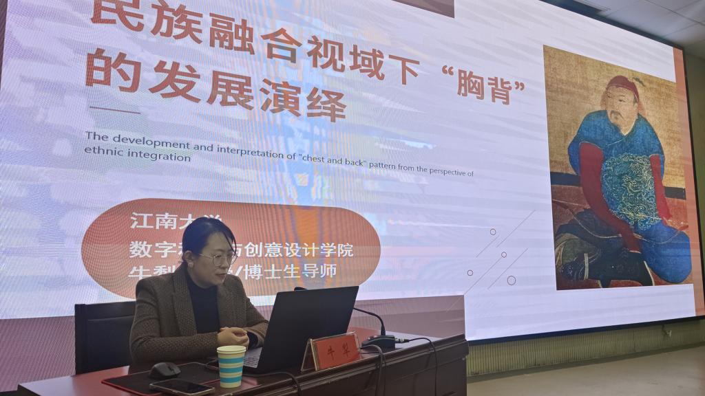 牛犁从历史、文化和艺术等多个维度,阐述了“胸背”的产生与定名、“胸背”的发展与演绎、民族交流与融合下“胸背”的传承与变化。这场别开生面的讲座拓宽了师生的学术视野,也激发了我们对传统文化传承与创新的思考。学术交流会议结束后,牛犁参加了学院2025年国家社科基金论证会。