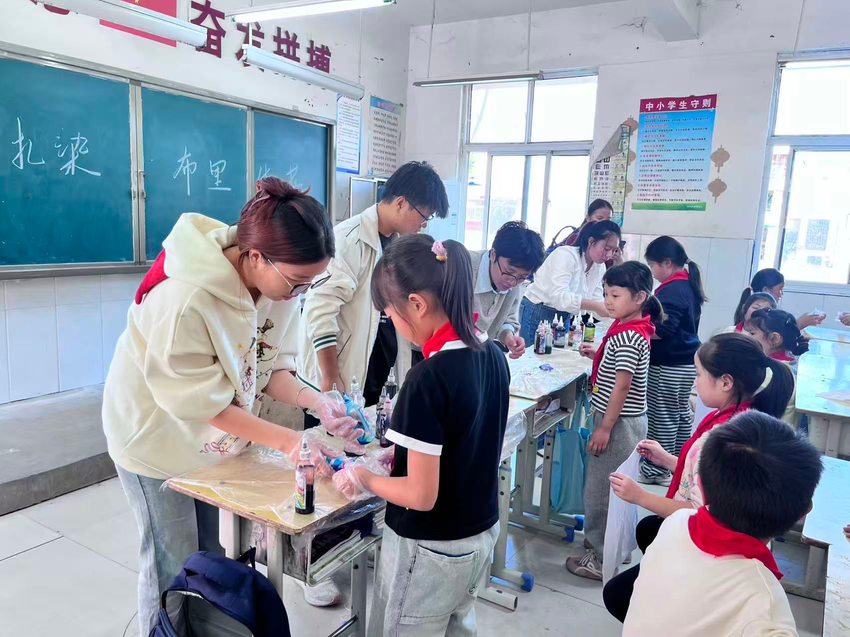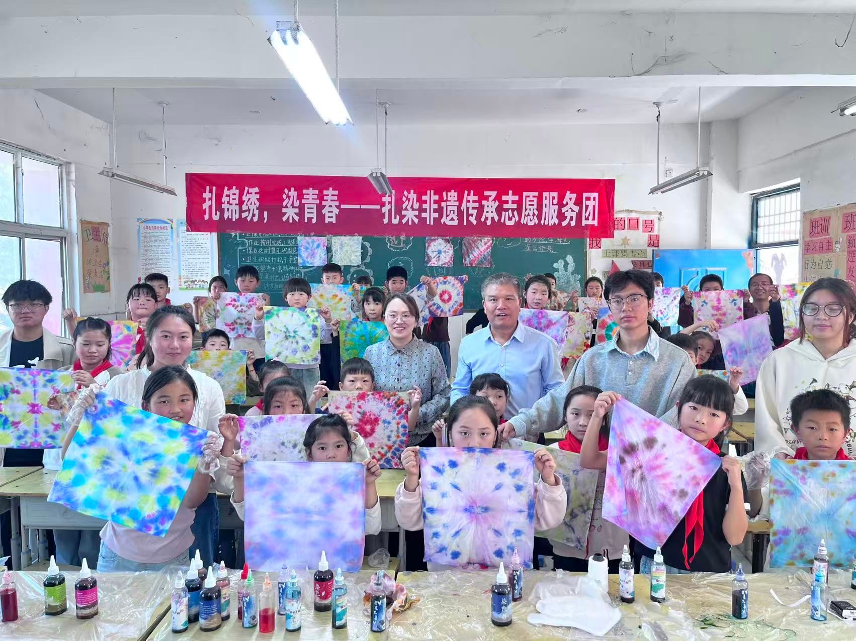 为丰富儿童的美育体验,推动非遗文化走进校园,9月25日上午,服装学院“扎锦绣·染青春”扎染非遗传承志愿服务团成员赴黄陵镇旧黄陵村小学,开展“扎锦绣·染青春”扎染主题非遗传承志愿服务活动。