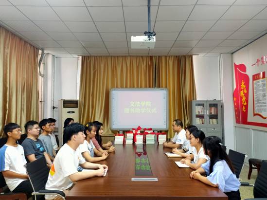 为进一步推动我院资助育人工作的常态化、长效化,从学习上扶智和扶志,使学院贫困学生安心学习,以全新的面貌投入到新学期的学习中,9月10日下午,文法学院举行“赠书助学”仪式。文法学院党委副书记邵帅,团委老师李可、王占魁、张慧及贫困学生代表参加此次赠书仪式。