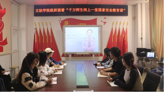 文法学院组织全体学生采用集中收看和个人分散观看的形式观看“千万师生同上一堂国家安全教育课”,切实增强学生的国家安全意识,形成维护国家安全的强大共识。