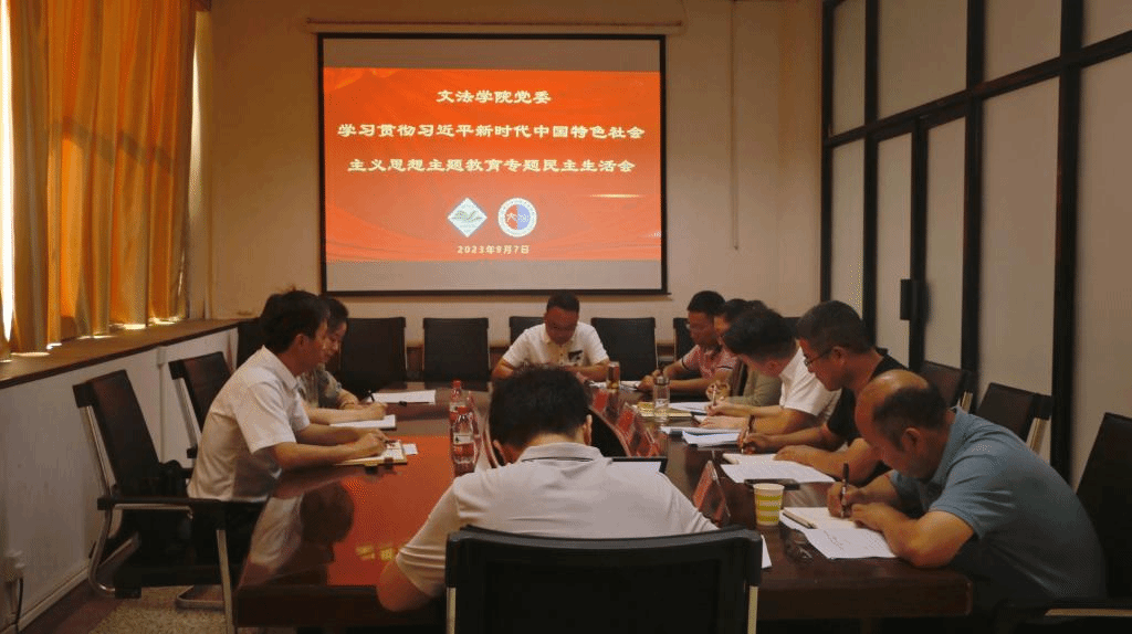 9月7日,文法学院领导班子学习贯彻习近平新时代中国特色社会主义思想主题教育专题民主生活会在文法学院二楼会议室召开,会议由院党委书记宗辉主持。学校主题教育专题民主生活会第五督导组到会指导,督导组组长樊跃峰作点评讲话。