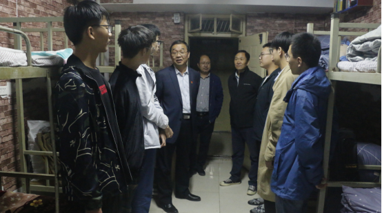 为了进一步了解新生情况,及时给予新生关怀和帮助,10月13日晚,文法学院党委书记王新宇、院长周全星,党委副书记邵帅、副院长王振军,团委书记王占魁,团委副书记张慧以及新生辅导员刘晏齐深入学生宿舍,走访看望2021级新同学。