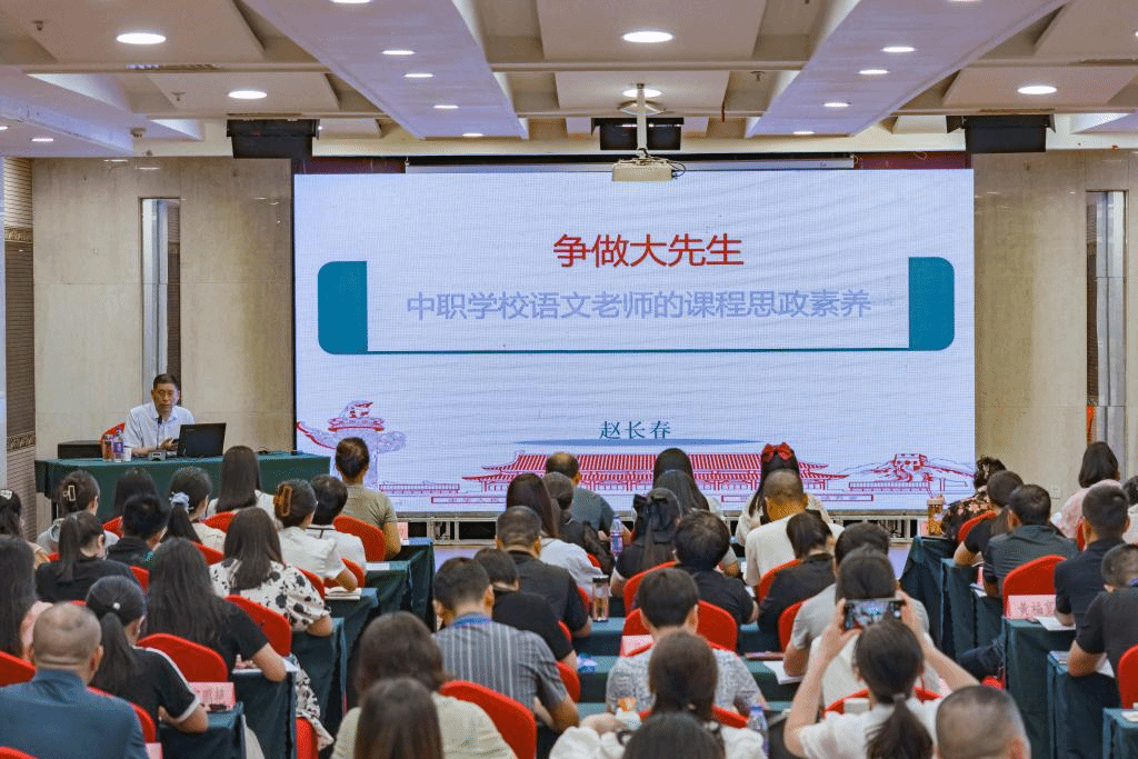 在课程思政模块还有其他专家学者的精彩讲授,张敏教授做了题为“回到历史·立足价值·聚焦审美——中职学校语文课程落实课程思政的教学原则”的演讲,指出语文教育宏观上承担着记录民族历史、传承民族文化、延续民族血脉、凝聚民族力量等重大使命,为职业学校语文课课程思政建设提出建设性意见。苏喜庆副教授强调:在中职学校的语文课程思政创新与实践中,应精准定位课程思政的融入契机与激发点,坚持以学生为中心,构建一套促进学生全面成长、贴近青年实际的课堂话语体系,有效推动课程思政的深入实施。