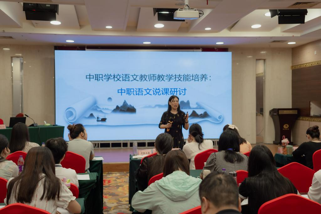 中职语文教师教学技能培养模块,郑州工程技术学院丁雪艳教授针对中职语文教师教学技能提升的需求,引入了BOPPPS模型作为教学设计的框架,生动展示了这一模型如何赋能中职语文课堂,推动教学创新。宋飞琼教授聚焦于中职语文教师教学改革研究,特别是省教科规划项目申请书的撰写技巧,为教师们撰写高质量项目申请提供了实用指南。王凤玲教授凭借长期指导学生参与讲课、说课比赛的丰富经验,对中职语文教师的说课技巧进行了深入的理论剖析与实践指导,为提升教师说课能力提供了宝贵经验。邱兴宇副教授对学员微课制作的实践指导获得了参训学员的高度认可和阵阵掌声。侯冬梅副教授深刻剖析了职业院校课程数字化建设的紧迫性,并分享了建设思路与具体实践案例,为教师们指明了方向。不少授课教师以其独特的魅力和深厚的专业功底,在短短三个小时的讲座时间内,便赢得了职业学校语文教育领域内众多学员的喜爱和认可。