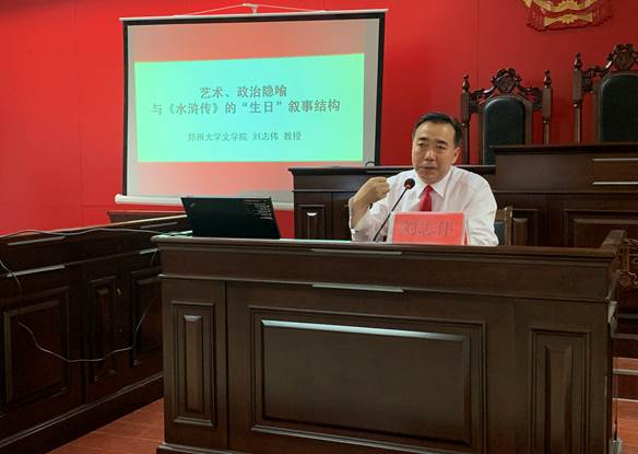 2019年5月17日上午,郑州大学文学院副院长刘志伟教授受邀在我院三楼模拟法庭作题为“艺术、政治隐喻与《水浒传》的生日叙事结构”的专题讲座。讲座由文法学院副院长张东旭主持,我院中文系古代文学教研室老师以及中文系学生代表聆听了此次讲座。