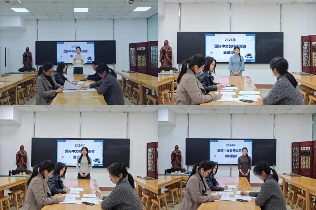 11月14日下午,文法学院在中华才艺实训室举办了2024年国际中文教育志愿者模拟面试,副院长刘锋、国际中文教育专业负责人宋培杰、专业教师刘晏齐担任考官,3名研究生、5名本科生参加本次模拟面试,部分学生代表到场观摩。