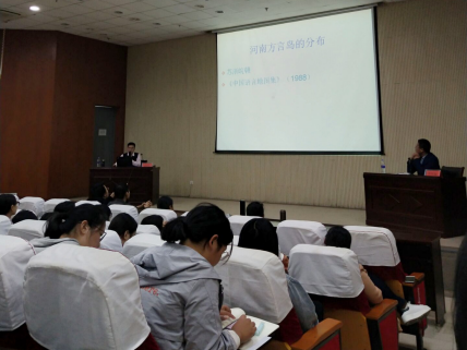 黄晓东教授通过方言岛的概念、分布与人口、历史来源、语言状况和语言生活四个方面来具体介绍浙江安吉县的河南方言情况,黄教授用诙谐的语言为我们讲述河南方言在安吉县的分布情况,在介绍浙江安吉县的语言状况和语言生活的时候,黄晓东教授向同学们展示了他所调研的家庭方言语码状况以及市场、学校等地方言语码使用的情况,引起了师生们的共鸣,在提问环节,同学们提出了很多探索性问题。