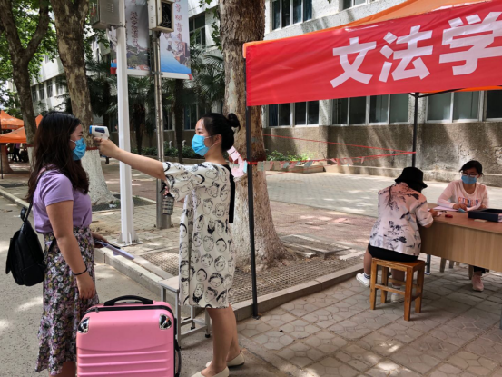 暖心服务,协助返校工作。文法学院学生党员冲锋在前,主动作为,积极协助老师们开展毕业生返校各项工作。毕业生党员返校后立即投入到迎接毕业生的工作中,为刚到学院服务台的同学们进行体温检测、双手消杀、身份核对、健康码查验……在实践中践行一名党员的初心和使命,充分发挥党员的先锋模范作用。