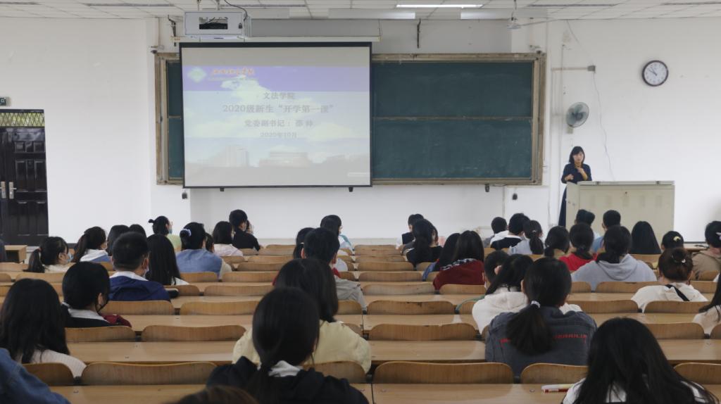 为帮助新生尽快适应大学生活,做好学业规划和适应教育,提升学生的素养,10月11日,文法学院于零合三教室组织开展2020级新生“开学第一课”,文法学院党委副书记邵帅,团委书记王占魁,2020级辅导员张慧,2020级新生代理班主任以及全体新生参加了本次活动。