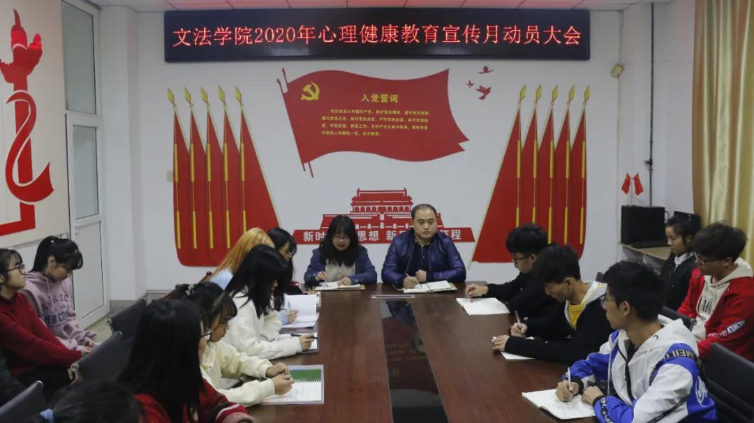 为进一步做好我院大学生心理健康教育工作,11月2日,文法学院在502会议室召开2020年心理健康教育宣传月动员大会。院团委书记王占魁、团委副书记张慧及各班团支书、心理委员参加会议。