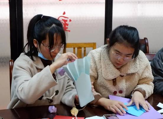 11月20日中午,文法学院在学院二楼会议室举办“同心抗‘疫’,青春绽放”心理健康主题手工折纸活动。2020级各班学生代表队参加了本次活动。