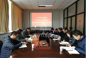 按照校党委《关于印发<河南科技学院党委“不忘初心、牢记使命”专题民主生活会工作方案>的通知》要求,2019年12月11日上午,文法学院党委在学院二楼小会议室召开“不忘初心、牢记使命”专题民主生活会。副校长王霞出席会议。校主题教育第三督促指导组副组长熊仁杰等到会指导。会议由学院党委书记王新宇主持。