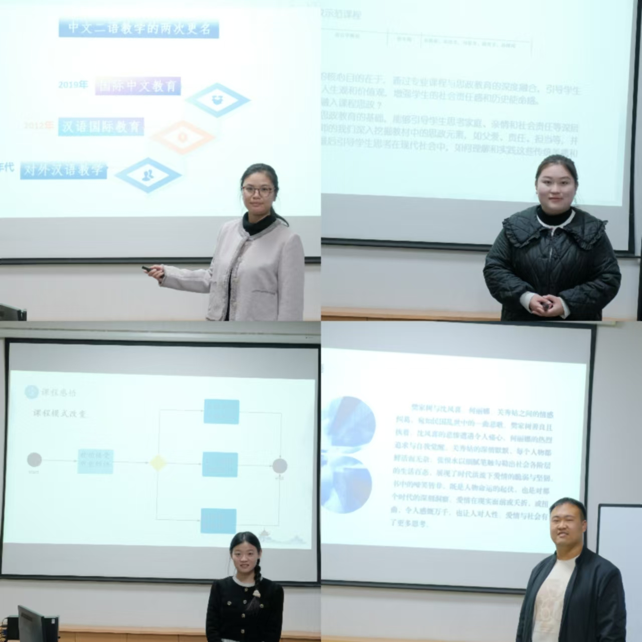 12月27日下午,文法学院在研究生教室举办“2024年研究生学习交流论坛”。论坛旨在分享交流学习收获,营造学术研究氛围,督促学业进度,锻炼综合素质。2024级学科教学(语文)和国际中文教育两个专业共11名研究生进行了分享交流。论坛邀请研究生导师副院长王振军教授、张敏教授、侯冬梅副教授、张晓庆副教授、宋萌萌博士担任评委,论坛由副院长刘锋主持。
