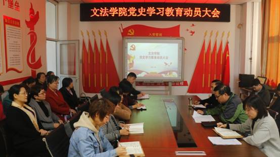 3月22日,文法学院在502会议室召开党史学习教育动员大会,文法学院党委书记王新宇、院长周全星,党委副书记邵帅以及全体教工党员参加了此次会议。会议由文法学院院长周全星主持。