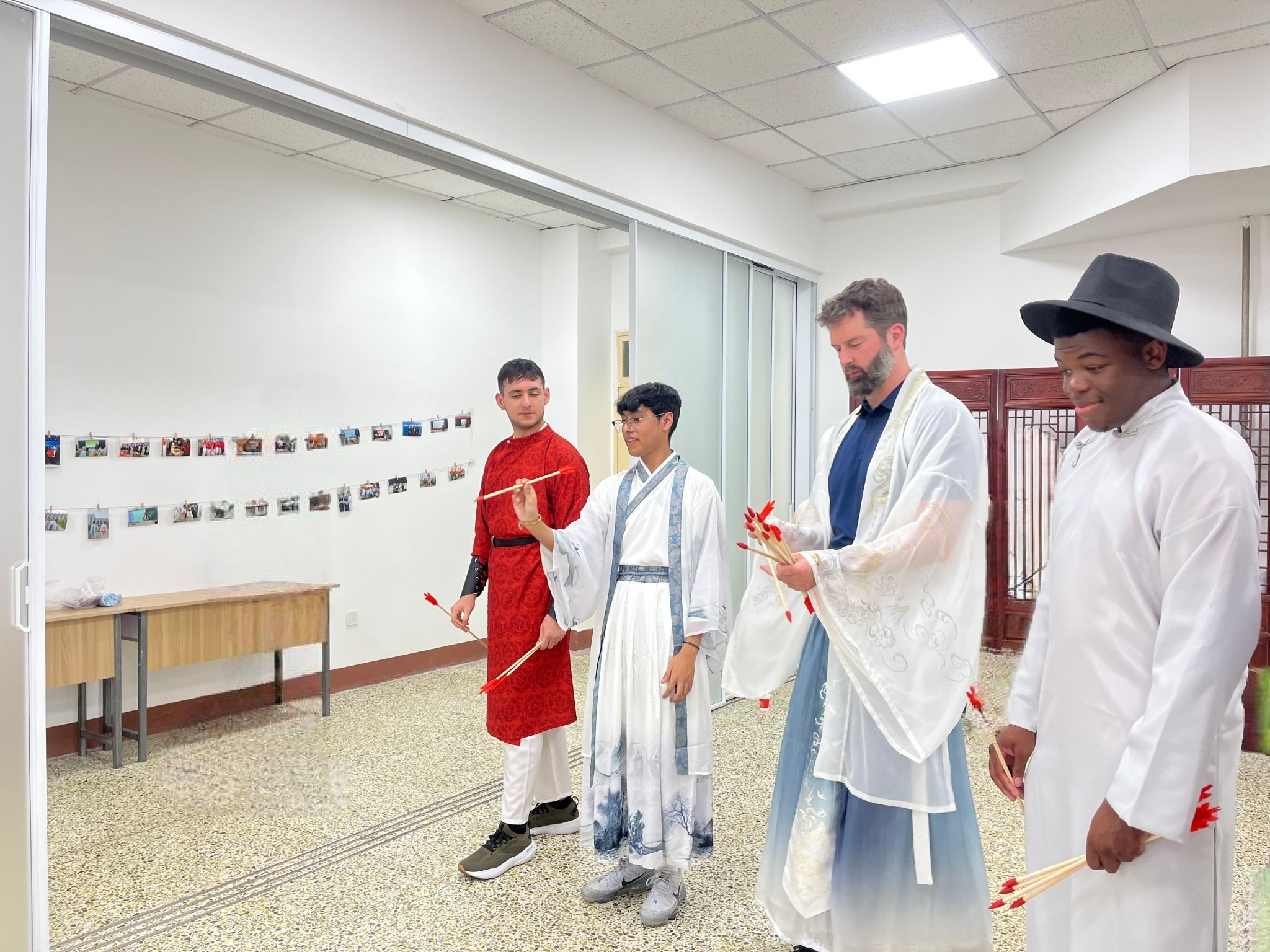6月14日下午,文法学院在中华才艺实训室举办了一场别开生面的“华服盛彩 承韵千年”活动。本次活动是由计算机科学与技术学院申报的“智农创新,华风共赏”美国青年使者交流学习计划项目的重要组成部分,旨在向美国佐治亚西南州立大学(GSW)的12名师生展示中国传统文化的独特魅力。