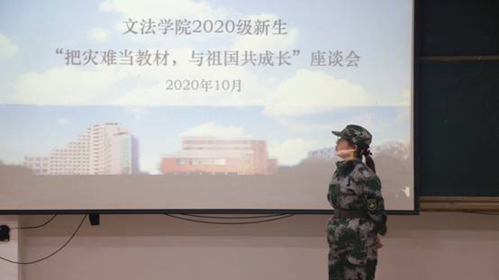 为进一步弘扬抗疫精神,深入了解新生思想动态,引导学生把灾难当教材、把困难当磨砺,努力把疫情危机化为教育契机。10月12日晚,文法学院于零合四教室召开2020级新生“把灾难当教材,与祖国共成长”座谈会。文法学院2020级辅导员张慧及全体新生参加此次活动。