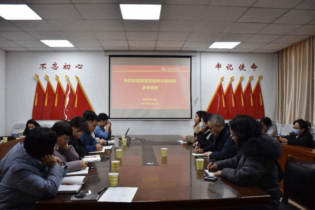 1月22日下午,教育科学学院邀请天津职业技术师范大学韩雪军教授在0#1008会议室作了《类型教育视野下应用型本科院校发展省思》的学术讲座。教务处处长杨宾峰、教育科学学院副院长刘秋云、王晶及全体教师参加了报告会。会议由副院长刘秋云主持。