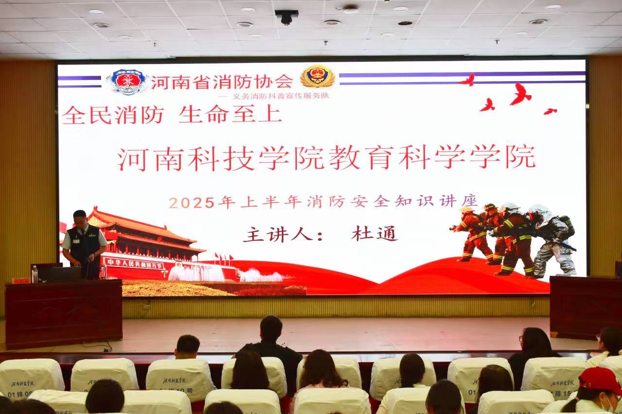 5月8日下午,教育科学学院在图书馆一楼报告厅开展消防安全知识讲座,全院师生代表共280余人参与活动。河南省消防协会专职教员杜通担任主讲人。