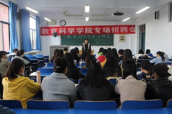 10月22日,应教育科学学院邀请,河南焦作前沿教育培训机构来校举行专场招聘会。来自教育科学学院的近90名学生参加招聘会。