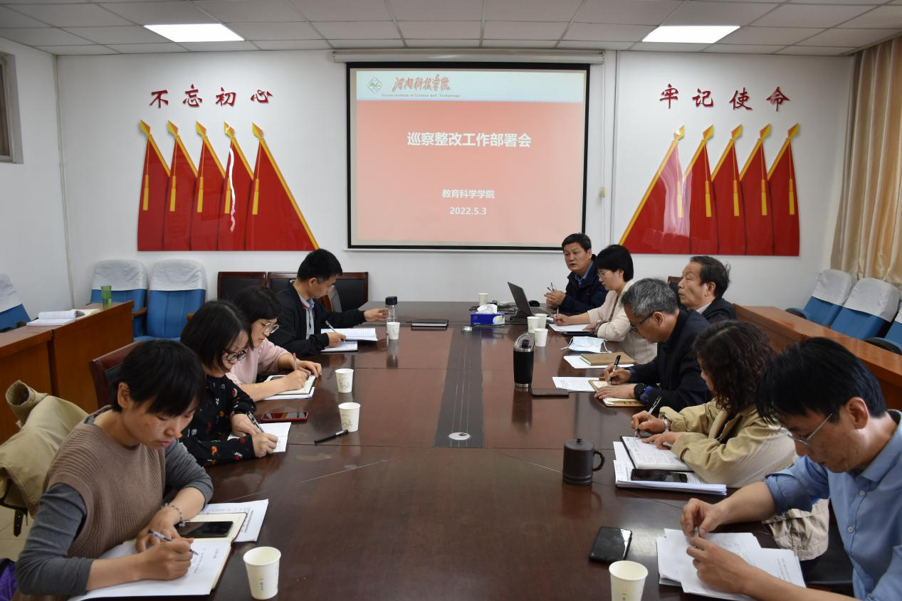 教育科学学院分别于4月19日、5月3日在零号楼十楼会议室召开巡察整改工作部署会议,专题研究部署巡察整改工作。学院班子成员、办公室主任、党支部书记、辅导员参加会议。会议由院党委书记张涛主持。