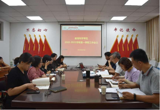 为贯彻落实学校秋季开学安全稳定暨疫情防控工作会议精神和学校下半年工作会议精神,9月1日下午,教育科学学院在0号楼会议室召开2022-2023学年第一学期工作会议,学院党政班子、办公室、团委、教研室主任、实验室主任线下参会,全体教师通过线上参加会议。会议由学院院长杨宾峰主持。