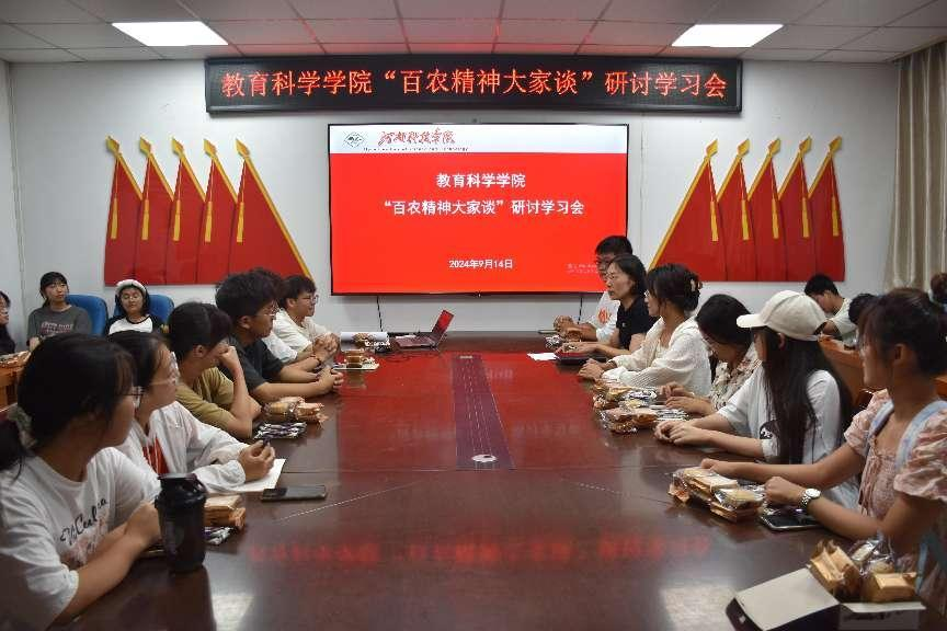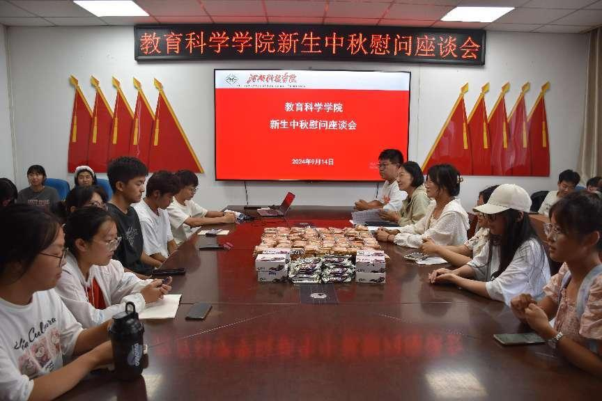 9月14日下午,教育科学学院在0号楼1008会议室召开新生中秋慰问座谈会暨“百农精神大家谈”研讨学习会。学院党委副书记李鹏,2024级新生辅导员王毓影及2024级新生班级负责人、宿舍长共40余人参加会议。会议由李鹏主持。