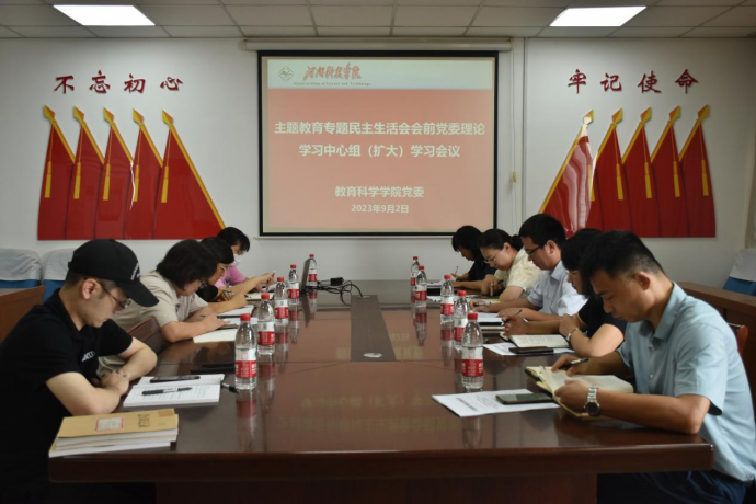 9月2日,教育科学学院在零号楼十楼会议室召开学习贯彻习近平新时代中国特色社会主义思想主题教育专题民主生活会会前党委理论学习中心组(扩大)学习会议。学院党政领导班子、支部书记、党务秘书参加了学习。会议由院党委书记刘晓杰主持。