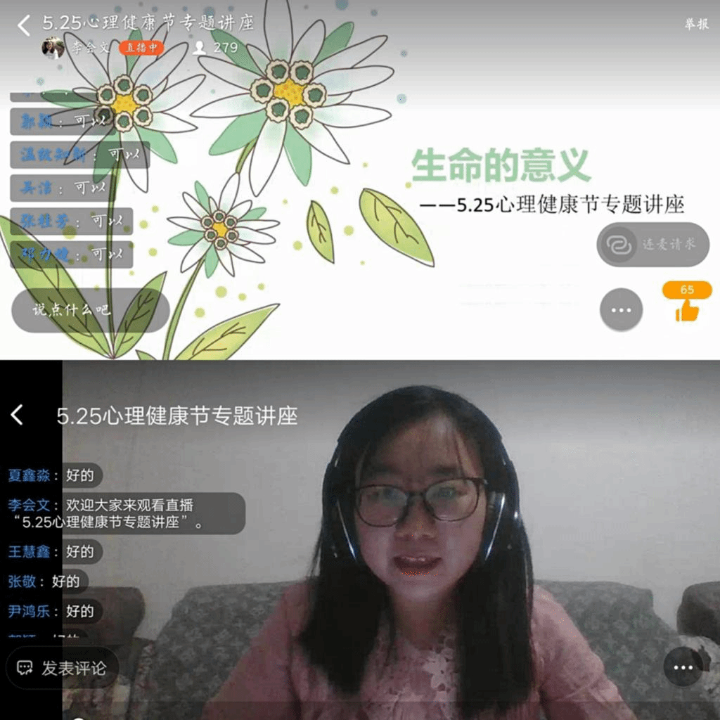 5月31日晚,我院举行“‘生命的意义’5.25心理健康节”线上专题讲座。本次讲座由辅导员李会文讲解, 17—19级心理委员、宿舍长及部分学生参加学习。讲座中,李会文围绕“人生的意义”、“生命的质量”等方面进行讲解,同时就“大学生如何在疫情期间安心学习”进行强调并解答了同学们在疫情期间的困惑,勉励学生在家认真学习,努力提升自我。