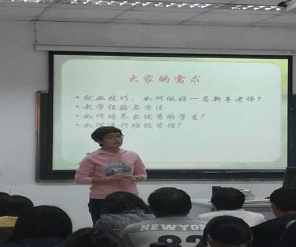 李艳敏,新乡市十中教师,河南省骨干教师,新乡市优秀班主任。她的讲座题目为“仰望蓝天 脚踩大地-如何做好一名新手老师”。李老师结合个人职业发展之路,从初登讲堂,讲述了自己如何历练成长的,使学生们看到班主任工作伟大光荣的同时也体会到期间的辛苦与付出。李老师把她经过多次尝试与研究,总结出的一套独特的、切实有用的班级管理方法——班级小组建设与量化考核,进行了分享。通过她的分享,让我们感受到班级管理有法可循,小组合作式的班级管理使班级管理更加轻松有序,量化考核使班集体充满前进的动力。