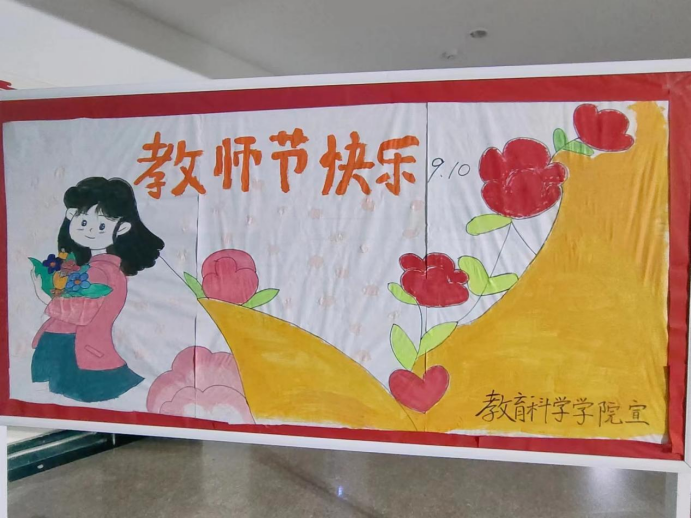 “新竹高于旧竹枝,全凭老干为扶持。”学院学生积极绘制教师节展板,展板上盛开的花朵象征了老师对同学们无私的爱,用画笔描绘自己心中的教师形象,答谢老师的培育之恩。