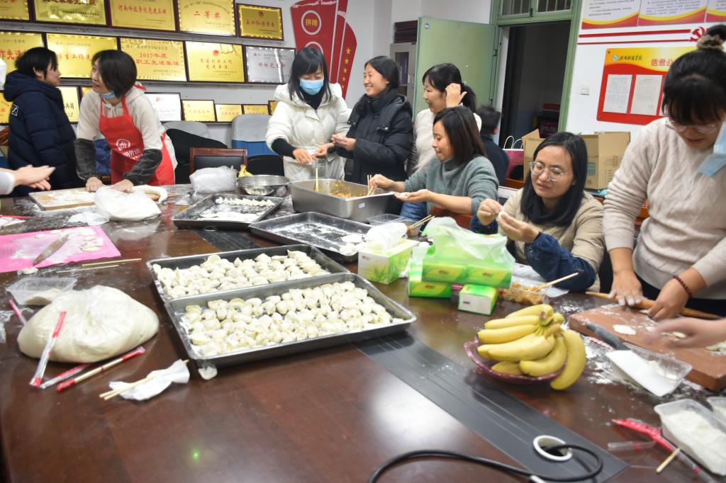 冬至节气大家一起包饺子活动,让教职工感受到了劳动的快乐和集体的温暖,提升了教师的幸福感和归属感,营造了和谐、快乐、温馨的教科氛围。