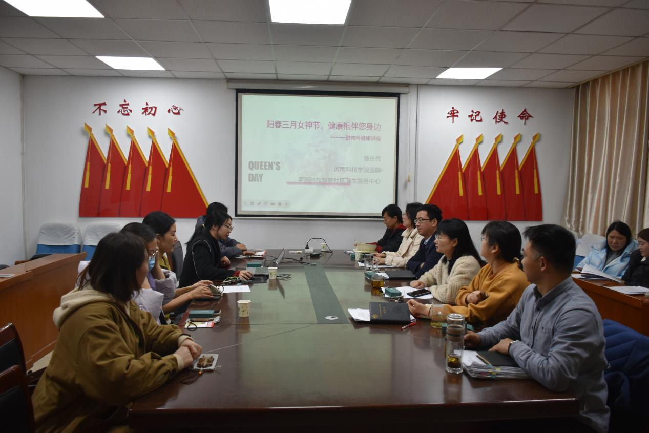为庆祝三八妇女节的到来,3月7日下午,教育科学学院分会在0号楼1008会议室举行“健康生活,你我同行”中医健康保健知识讲座,邀请校医院中医理疗科曹长伟医生为教职工普及健康知识。