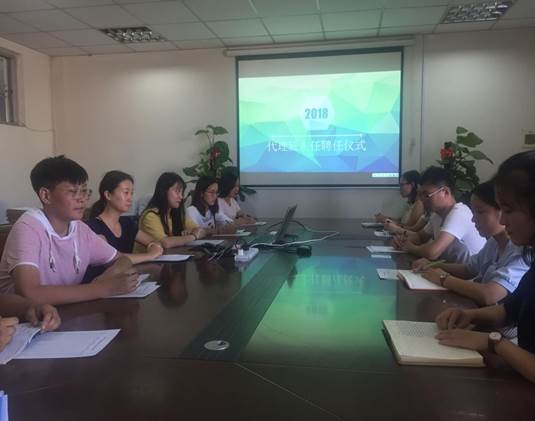 9月7日下午,教育科学学院2018级新生代理班主任聘任仪式在零号楼十楼会议室举行。院团委副书记李威,辅导员卢璐洁、胡静月参加本次聘任仪式。仪式由卢璐洁主持。