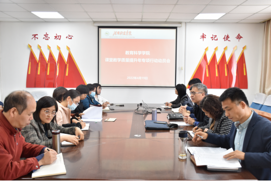 为贯彻落实学校“课堂教学质量提升年专项行动”任务举措,深化本科教育教学改革,充分发挥课堂教学的人才培养主渠道、主阵地、主战场作用,切实提高课堂教学质量和育人水平,4月19日上午,我院在0号楼10楼会议室召开“课堂教学质量提升年专项行动”动员会。学院领导班子成员、系主任及专业负责人、教研室主任、教学秘书及教师骨干参加会议。会议由院长杨宾峰主持。