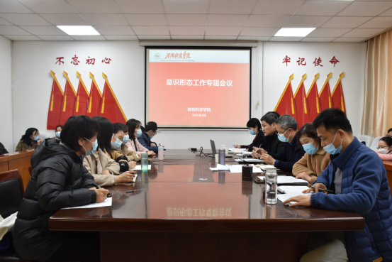 3月31日下午,教育科学学院在零号楼十楼会议室召开意识形态工作专题会议。学院党政班子成员及全体教职工参加会议。会议由院党委书记张涛主持。