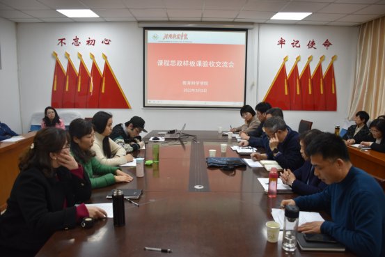 按照《河南科技学院2021年课程思政建设工作计划》要求,我院于3月3日下午在0号楼10楼会议室召开校级课程思政样板课验收交流会。会议由副院长王晶主持,学院领导班子、系主任、教研室主任及辅导员等组成的验收专家组到场参加,全体教师观摩了交流汇报。