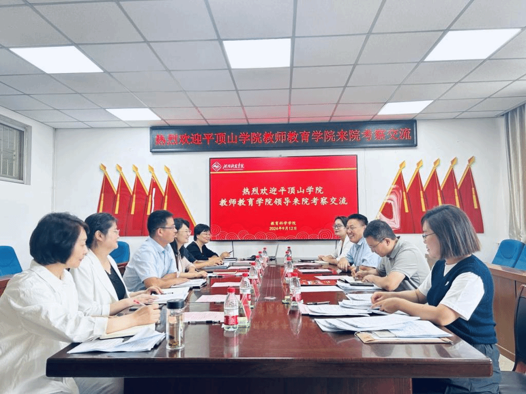 9月12日上午,平顶山学院教师教育学院一行领导来我院考察交流教育硕士专业学位研究生培养工作,会议在0号楼10楼1008会议室举行。平顶山学院教师教育学院党委书记李志华、副院长段恒耀、小学教育系主任曹丽乐、科研办主任(研究生办)廖梦怡参加会议,我院领导班子部分成员、教师代表出席会议。会议由教育科学学院党委书记刘晓杰主持。