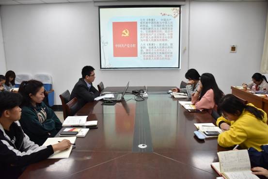 4月11日晚,学院邀请马克思主义教育学院副教授、硕士生导师张希中博士在零号楼十楼学院会议室开展“党的十九大报告精神解读”主题党课活动。学院全体党员、预备党员、积极分子参加活动。