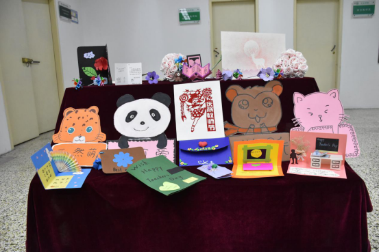 同学们怀着崇高的敬意和满腔的热情,立足专业特色,通过巧妙的构思,准备各色纸张、手绘制作卡通画板和精美的手工艺术花等形式,并向老师诚挚地说“老师,您辛苦了!”表达对老师辛勤耕耘的感激之情。